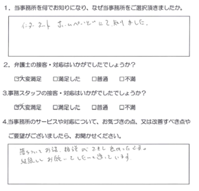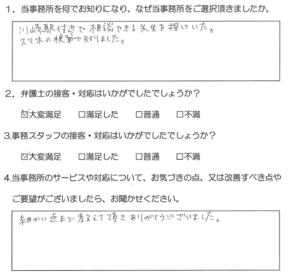 川崎市の弁護士による離婚・不倫の慰謝料相談 > お客様の声 > お客様の声9